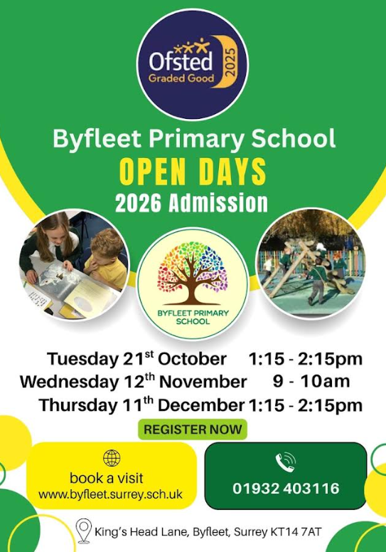 Choosing a school for your child can be a daunting process with many schools to choose from. We are pleased to be able to offer tour dates so you can see our terrific school first-hand, and experience all the wonderful opportunities we are able to offer at Byfleet Primary School, and the reasons we feel you should consider us for your child’s school experience.